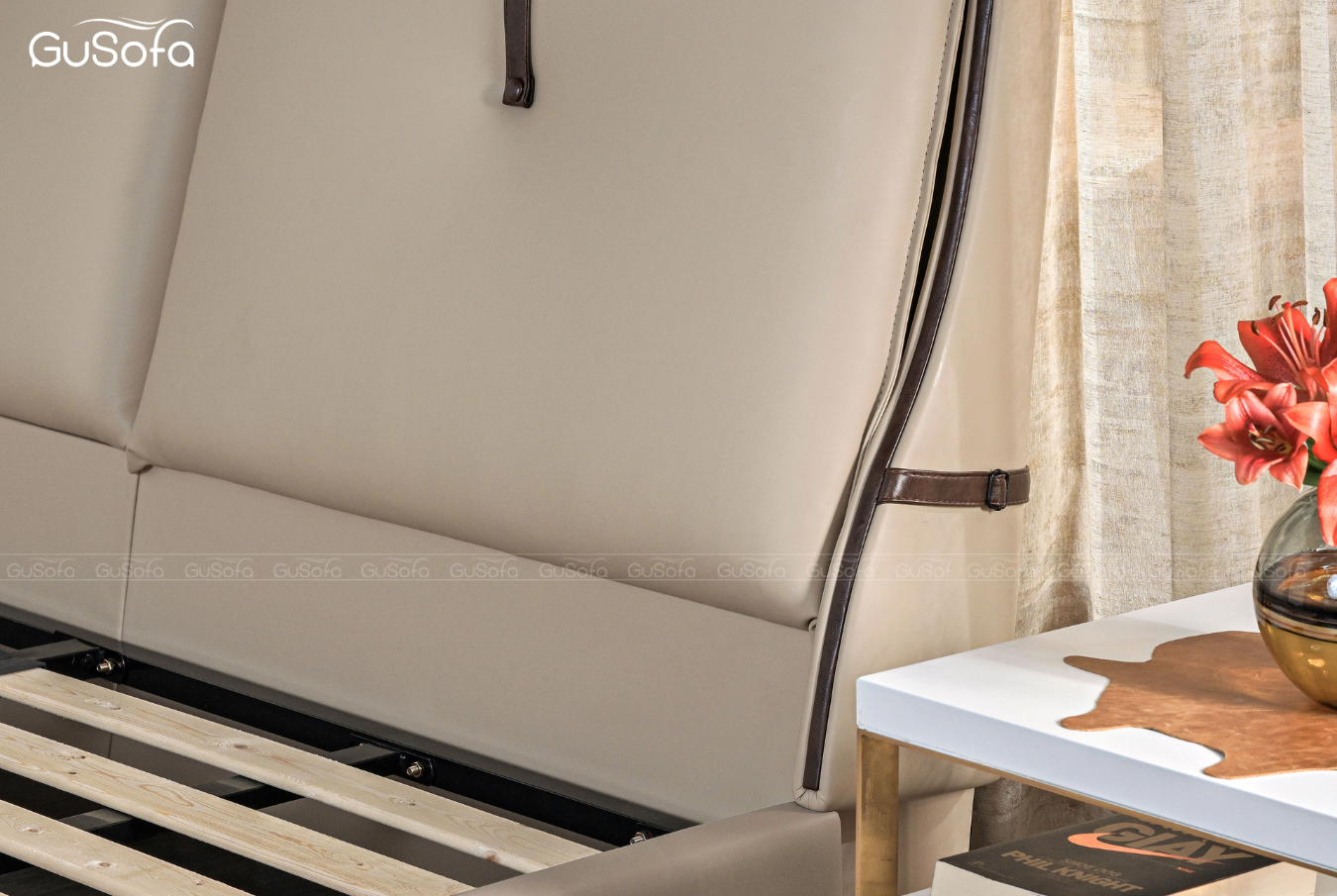 Sản phẩm được sản xuất bởi Gu Sofa. Tại Gu Sofa có hơn 200 mẫu vật liệu da bò, vải nhập khẩu tiêu chuẩn cao với rất nhiều màu sắc để bạn thoải mái lựa chọn chất liệu riêng phù hợp với phong cách sống và không gian sống của riêng bạn.
